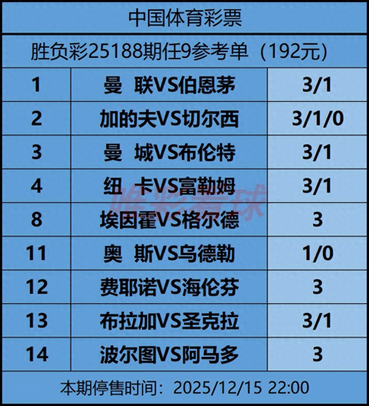 《姜山冷门》25188期任九预测